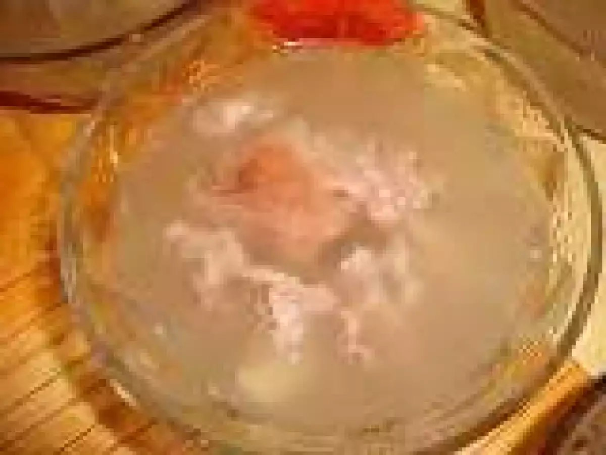 * cand zeama e suficient de gelatinoasa (incercati sa va lipiti doua degete cu ea :D- daca merge, e ok) adaugam jumatate din usturoiul curatat si zdrobit
