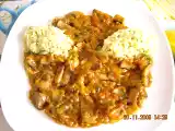 Ingrediente: 600 g carne de vitel 1 kg cartofi 1 ceapa mai mare 1 lingurita boia de ardei dulce 70 ml pasta de tomate sare,piper,cimbru 1 foaie de dafin...