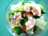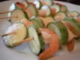 Ingrediente: 4 creveti (100g....90cal.) 2 rosii mici (130g......23.4 cal) 1/2 din o ''bila'' de mozzarela (apr.60g.....153 cal) 50g castravete(50g......6cal) 3...