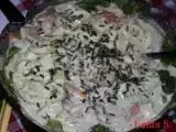 Ingrediente: o salata verde taiata marunt o ceapa tocata si ea marunt un pachetel surimi o ceasca creveti decorticati o mana de midii congelate sau 20 midii in...