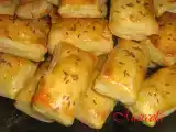 Ingrediente: un pachet aluat foietaj decongelat (nici intr-un caz la microunde) 1 ou 100 g fetasau telemea de vaca 50 g cascaval ras o lingura mare margarina...