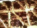 Ingrediente: Blat: 6 albusuri, 200 g zahar 200 g nuca macinata 3 g faina 1 praf de copt glazura 1: 200 g ciocolata alba , 5 l ulei crema: 10 g zahar 200 g unt...