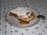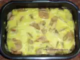 Ingrediente: 300 g cozonac - 500 ml lapte - 150 ml vin - 2 oua - 1 budinca caramel - 150 g zahar - 3 ling. Miere - 150 g branza de vaci - 5 mere - dulceata de...