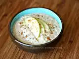 Ingrediente: 1 cana fulgi de ovaz fini 1 cana ? 1 1/4 cana lapte de soia 1 mar acrisor curatat de coaja si cotor miere dupa gust 1 vf cutit scortisoara sau...
