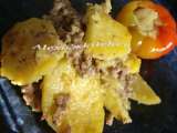 Ingrediente: 500 g. cartofi fainosi 2 cepe un catel, doi de usturoi 2 vinete potrivite (600 g.) 6 linguri ulei de masline 400 g. carne tocata mixta rozmarin,...
