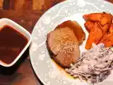 Ingrediente: Ingrediente pentru 2 portii mari de salata: 1. 300 gr cartofi dulci (cam un cartof mare) 2. 5 felii groase de sunca de Praga (sau alt tip de...