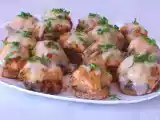 Ingrediente: 20 de ciuperci 200g de piept de pui tocat 2 linguri de pasta de rosii 100g cascaval ras 100g masline verzi fara samburi taiate in bucatele mici o...