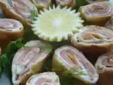 Ingrediente: 3 clatite sarate, 150 g somon afumat, 150 g crema de branza cu smantana, marar, lamaie. 2 oua, o ceasca de faina, -1 pahar de lapte, 2 lingurite...