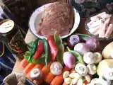 Cotlet de porc la tava pe pat de legume Felul principal Ușor 30 min 3 oreIngrediente: cotlet porc fara os 1kg slanina cruda 200g cartofi 1kg morcovi 500g cepe 4 buc usturoi o capatana ardei kapia rosu si verde cate o bucata ardei...