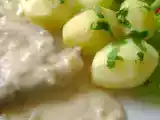 Ingrediente: 4 cotlete de porc (~150 g/buc) 50 g faina, sare, Sos: 50 g faina, 50 g unt, 200 ml lapte, 50 g hrean, 50 g smantana, o lingurita zeama de lamaie,...