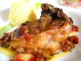 Ingrediente: 5-6 felii cotlet de porc fara os 2 ardei capia 2 cepe 2 catei de usturoi 1 legatura patrunjel 200 g pasta de rosii 200 ml vin alb sec ulei sare piper.