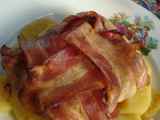 Ingrediente: 1 muschiulet de porc de max 400 g 4 cartofi medii, taiati in cubulete de circa 2-3 cm 10 felii de bacon - gasiti pachete cu mai multe felii, ca o...