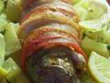 Ingrediente: 3 pastravi 300 g bacon 1/2 capatana usturoi 2 linguri ulei de masline zeama de la 1/2 lamaie 1 lingurita boia de ardei ghimbir rozmarin sare si...