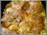 Ingrediente: 5-6 felii de pulpa de porc fara os si degresata 4 mere curatate si taiate felii 2 morcivi curatati si taiati rondele 2 cartofi mari taiati felii 1...