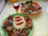 Ingrediente: 300 g pulpa de porc 200 g carnati cabanos 100 g ficatei de pui 200 ciuperci feliate 2 cepe 2 rosii 150 ml suc de rosii 2 catei de usturoi ulei...