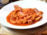 Ingrediente: 500 g carne de porc slaba 1 ardei gras 1 ceapa 2-3 catei usturoi 6 rosii 100 ml suc de rosii 1-2 cani apa 4 linguri sos picant de ardei Pentru...