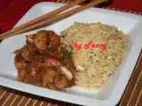 Ingrediente: 250 g de muschi de vita 125 g de orez cu bob lung fiert conform indicatiilor producatorului 3 linguri de ulei de arahide 2 linguri de sos de peste...