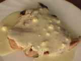 Ingrediente: Ca ingrediente am folosit : 750 g carne de vita un pahar de vin alb sare si piper dupa gust 2-3 linguri de ulei Pentru sos : 100 g branza...