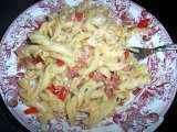 e una din mancarurile mele preferate ptr seara, aseara am ajuns moarta de foame de la munca si am preparat asta, e gata in 5 min,dar aveti nevoie de macaroane fierte in prealabil,eu cam am tot timpul cu schifositii mei care le prefera : se pune la prajit