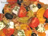 Ingrediente: 150 g paste scurte 2 cutii de ton in apa 200 g telemea sau feta 100 - 150 g masline 5 - 6 rosii cherry 3 linguri pasta de ardei 1 ceapa 2 - 3...