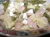 Ingrediente: 400 g fasole verde, 200 g paste 200 g creveti 2-4 linguri de marar 2 linguri de otet de vin 1 lingurita suc de lamaie 100 g cascaval sau branza...