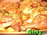 Ingrediente: 4-5 pulpe de pui 2 morcovi 1 rosie 1 ceapa ardei gras rosu si verde rozmarin 3-4 linguri cu miere mustar sare piper cascaval 1 kg cartofi usturoi...