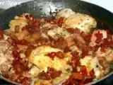 Ingrediente: 4 pulpe superioare de pui, dezosate si fara piele 8-10 bucati de rosii uscate[1], taiate in cubulete 100 g de sunculita afumata ½ de pahar de vin...