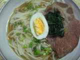 Ingrediente: 200 g ceafa porc, 1 bucata ghimbir, 3 bucati ceapa verde, 100 g paste ramen, sos de soia,sake,zahar brun, 4-5 fire spanac verde, dashi, 1 ou fiert...