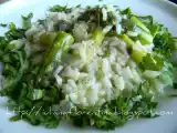 Ingrediente: 1 ceapa, tocata marunt 30 g unt 500 ml supa clara de vita 500 ml zeama in care a fiert sparanghelul 300 g orez cu bob mare rotund 150 ml vin alb...