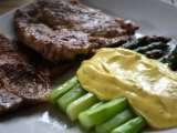 Pasul I : am spalat carnea de porc (ceafa), am uscat-o, am batut-o cu ciocanul, si am condimentat-o cu sare, piper, boia, si am lasat-o la frigider. Pasul II : am taiat putin din coditele de sparanghel, partea mai tare, si apoi i-am curatat cu cutitul
