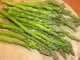 Mi-au ramas cateva fire de sparanghel de ieri, pe care le-am pastrat, de pe o zi pe alta, infasurate intr-un prosop ud si bagate la frigider. Azi, le-am fiert cam 5 minute, in apa care clocotea deja. I-am pus apoi intr-un vas termorezistent uns cu ulei, a