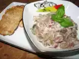Ingrediente: costita afumata sau ciolan afumat 1 ceapa (poate fi verde) 1 morcov mai mare 1 kg cartofi noi sare, piper tarhon in otet si proaspat smantana