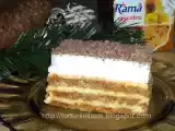 Ingrediente: Pentru foi - 100 g zahar tos - 100 ml apa - 2 galbenusuri - 100 g zahar pudra - 1 plic praf de copt - 100 g margarina sau ulei - 450 g faina Pentru...