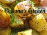 Ingrediente: 2 bucati piept de pui o lingurita boia iute 5 catei de usturoi condimente pentru pui 2 frunze de dafin cimbru rozmarin ulei de masline cartofi noi...