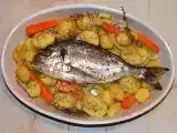 Ingrediente: -4 pesti(eu am ales macrou) -2rosii -2lamai -1morcov -2foi de dafin -100g unt -o punga de legume -sare -piper -boia