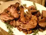 Ingrediente: 8 pulpe de pui dezosate 50 l ulei 1 legatura patrunjel verde cimbru, rozmarin sare, piper boia de ardei iute 300 g ciuperci (din cutie)