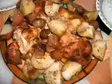 Ingrediente: 400 g ceapa verde, tocata 1 pui (de aprox.1,5 kg) 2 linguri ulei de masline cu aroma de lamaie 2-3 lingurite sare cu ierburi aromate 250 ml vin...