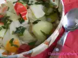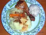 Ingrediente: 1 ceapa 1 morcov 1 ardei gras rosu 1 ceapa rosie Cativa catei de usturoi Foi de dafin Afumatura Patrunjel verde Cartofi Pasta de tomate piper boia...