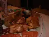 Ingrediente: 4 buc aripi de curcan,partea carnoasa 1 Lg pasta de ardei 1 Lg ulei 1 Lg praf de usturoi -1 Lg miere 1 lg praf de ghimbir 1 Lg sos soia 1 Lg otet...