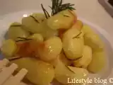 Ingrediente: 500 g cartofi mici (eu am gasit la Metro gata curatati si vidati in punga) 5 catei de usturoi 4-5 lg ulei de masline rozmarin proaspat sare