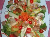 Ingrediente: o salata verde, mare 2 dovlecei tineri,medii 2 morcovi o ceapa rosie mica 4 rosii /o mana de rosii cherry 1 lingurita mustar de Djion (sau...