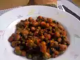 Ingrediente: 250 g mazare congelata 200 g naut fiert 300 g pasta de rosii 1 ceapa 2 graunti de usturoi 4-5 linginuri ulei de masline 1 foaie de dafin 1...