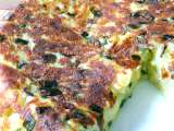 Ingrediente: 1 kg cartofi feliati si fierti 4 oua fierte feliate 2 cesti smantana 50 g unt sau margarina 2 cepe feliate gros 1 canita de pesmet sare piper boia