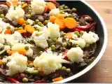 Ingrediente: 200 g mazare proaspata sau congelata 600 g conopida 3 morcovi de marime medie 1 ardei gras rosu 1kg ficatei de pui 3 cepe medii 4 catei de usturoi...