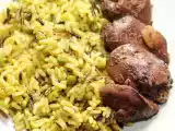 Ingrediente: Pentru ficateii de pui inveliti in bacon: Ficatei de pui Felii de bacon Sare si piper, dupa gust 5-6 catei de usturoi Ulei Pentru orezul cu legume,...
