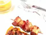 Ingrediente: 5-6 pulpe pui partea superioara 400 g piept de porc 2 ardei grasi (rosii, galbeni , verzi , de care dispuneti) 5-6 bucati ceapa slanina afumata...