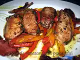 Ingrediente: un muschiulet de caprioara 5-6 felii din pastrama de mistret 1/2 ardei gras rosu 1/2 ardei gras galben 1/2 ardei gras portocaliu ulei de masline...