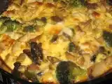 Ingrediente: Pentru o tava de frittata (6 portii) aveti nevoie de : 8 oua ecologice 5 ciuperci mari 1 ceapa verde 1 ardei gras rosu 150 gr somon afumat 5...
