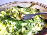 Ingrediente: o jumatate de dovlecel un bol de frunze de spanac proaspat 1 cutie de perle de branza cu smantana 3 oua sare, piper, nucsoara un cub de unt