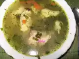 Ingrediente: 6 oua 100 g faina 100 g gris 100 g cascaval 100 g unt sare si piper 800 g carne de pui 2 cepe 1 morcov 1 bucata telina 1 radacina patrunjel...